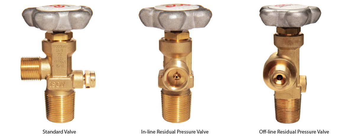 The valves can be used for technical industrial gases up to 300 bar working pressure (Standard or Residual Pressure Valve models).